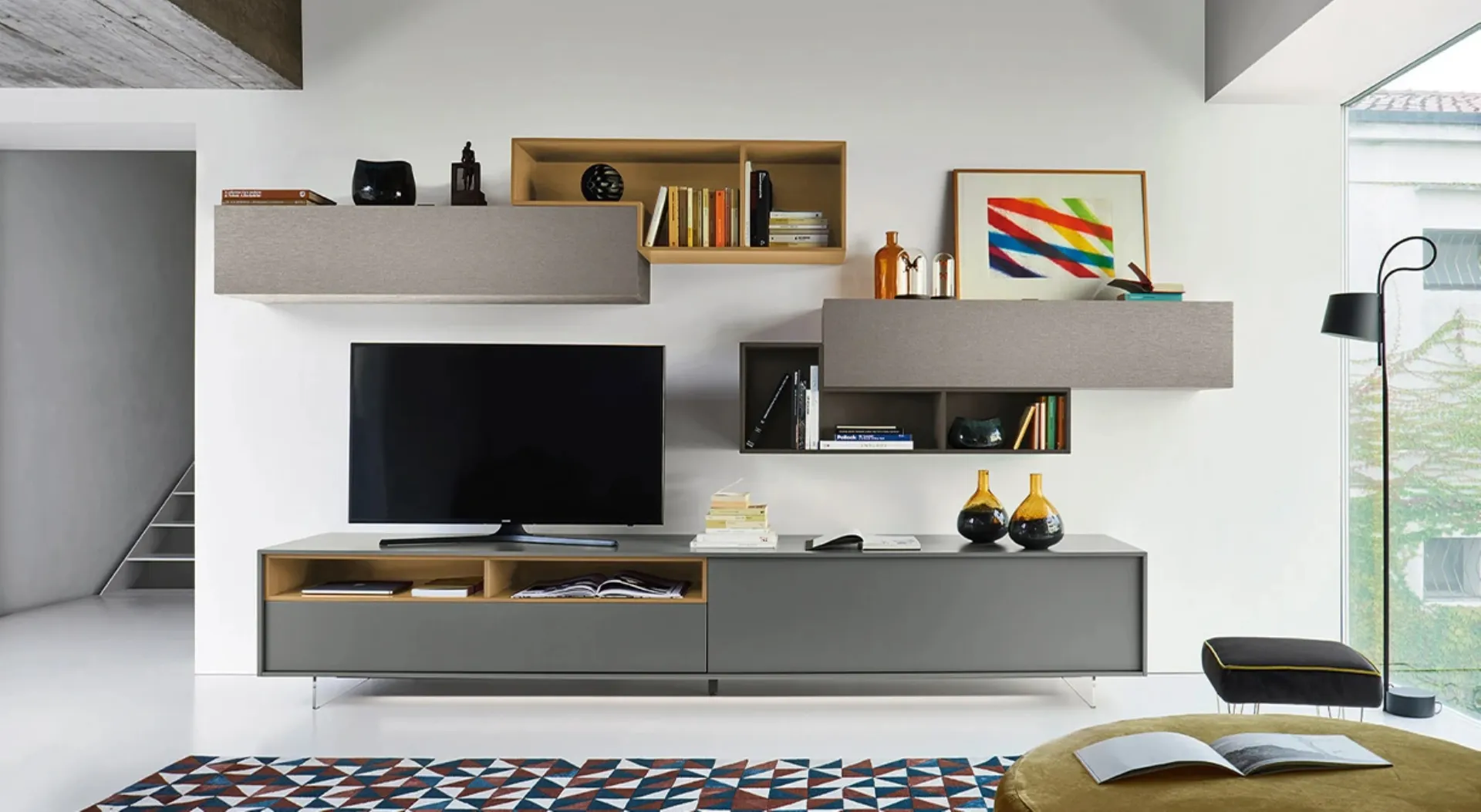 This solution represents all the excellence that the brand ensures thanks to years of professionalism and great dedication in the furniture and design sector. Even in a small living room, this type of furniture manages to optimize spaces by enhancing every corner and ensuring maximum modularity typical of modern solutions. A bit of bookshelves, a bit of storage units and displays: Wall Units are ideal for optimizing a functional and practical space. If you are looking for space-saving furniture and customizable solutions, contact us and discover more about the best brands in Home Furnishings.