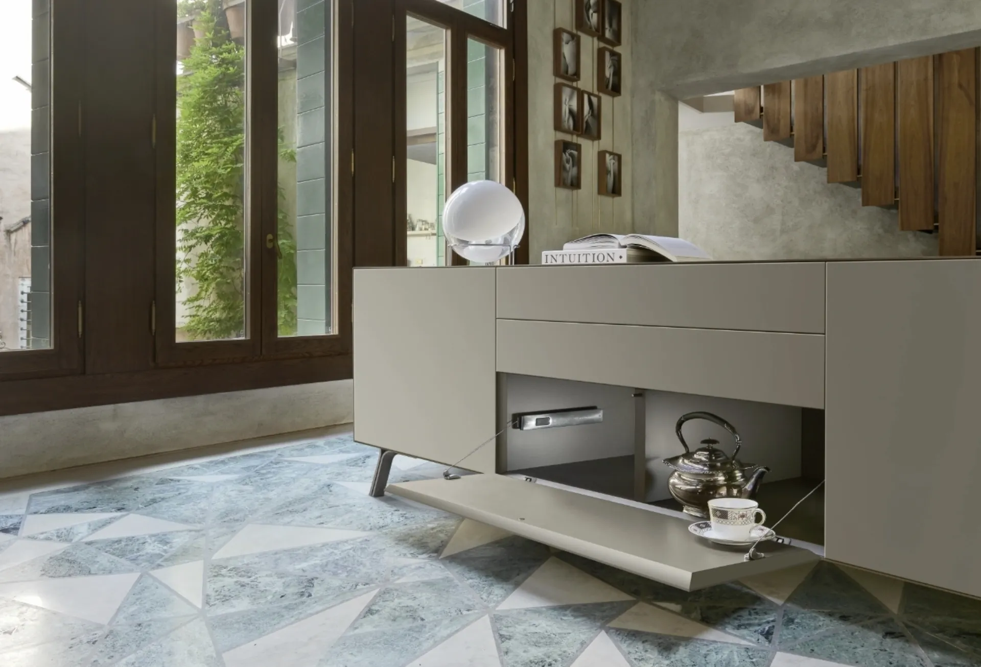 A living room like this strategically optimizes your interiors, fully enhancing them: contact us and discover how to create an atmosphere with great personality with furniture and living room accessories. The manufacturer brand offers high-end Home Furnishings in their catalog: we look forward to welcoming you in store to show you the most exclusive compositions in person. The captivating character and unique design will also win you over: the Sangiacomo Domino Mono 01 Sideboard is one of the most exclusive solutions on the market. Discover our line of matte lacquered sideboards from the renowned brand Sangiacomo, like the model in the photo, and you can create a functional and practical living room.